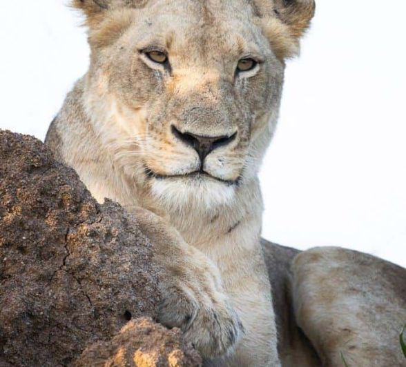 The following day, all 3 lionesses were resting on top of a termite mound enjoying the last afternoon sun rays. After shifting here and there, they eventually gave up and moved down to the soft green grass.