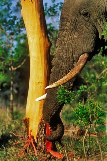 It is known that elephants sometimes feed on the bark for its natural healing properties in fighting tooth decay. Unfortunately, in pulling this toothache remedy off the tree, the elephants sometimes ring-bark the tree, which may eventually kill the Knob-thorn. Should these trees be pushed over by elephants they will seldom re-grow.